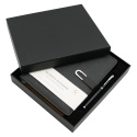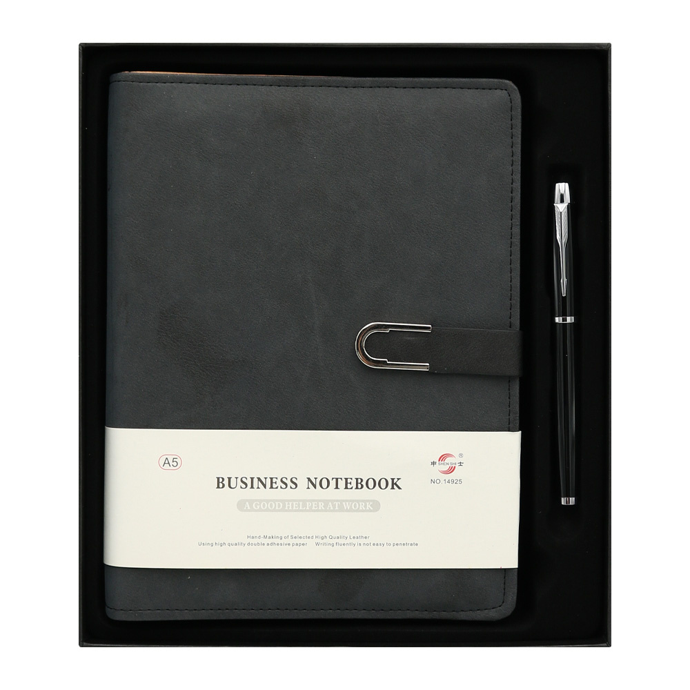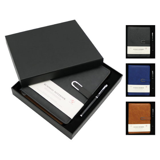 Zápisník /Diár s mäkkučkou PU obálkou a magnetickou prackou v štyroch farbách + Roller s čiernou, veľkoobjemovou náplňou.
