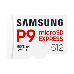 Samsung P9 Express je špičková microSDXC pamäťová karta s veľkou kapacitou 512 GB, určená pre široké spektrum zariadení - od mobilných telefónov a tabletov až po drony, akčné kamery, notebooky a herné konzoly.