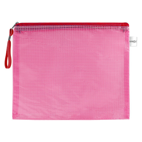Sieťovaná obálka s praktickým uzatváraním na zips, vyhotovená z PVC. Široká možnosť využitia - určené napr. na prenášanie a uchovávanie dokumentov, fotografií, CD, diskiet. Farba: červená.