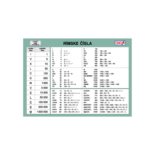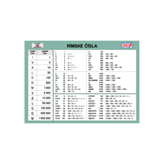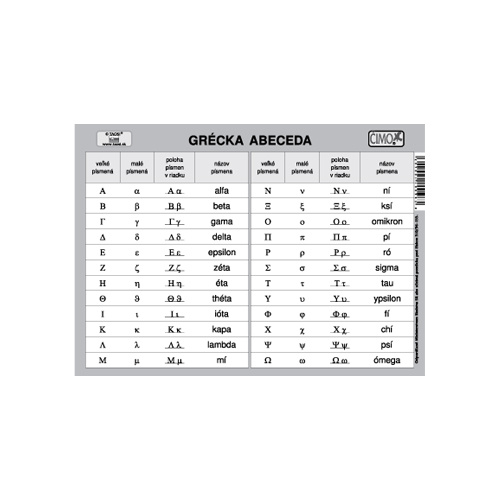 Školská kartička - Rímska sústava/Grécka abeceda, 180x130 mm