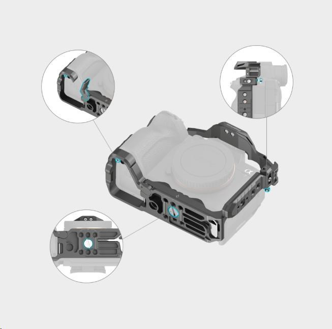 Otvory na bocích a dně klece umožňují připevnění takového příslušenství, jako je popruh SmallRig na ruku 2456.
