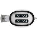 Pro rovnoměrné opečení krajíců chleba všech velikostí se pečivo v otvorech topinkovače dokonale vycentruje.