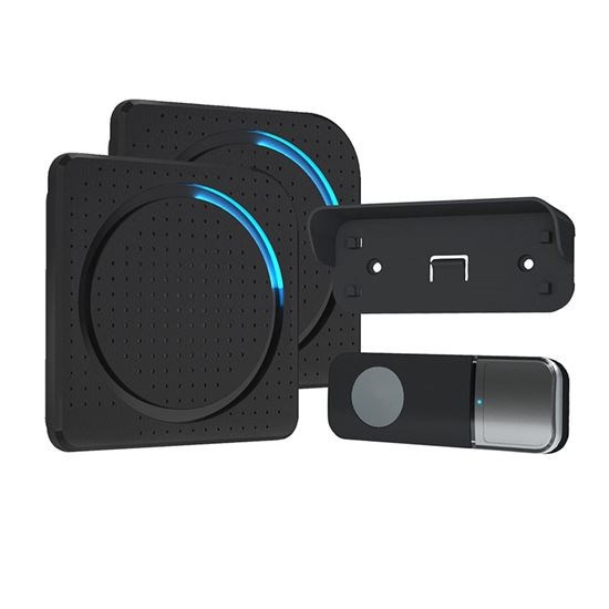 sada 2x prijímač, 1x tlačidlo jeden zvonček zapojený do zásuvky a druhý prenášateľný na batérie. využitie v domácnostiach - napr. v zásuvke doma a prenášateľný na záhradu využitie v komerčných priestoroch - napr. v zásuvke v kancelárii a prenášateľný do skladu funkcia „Learning code“ umožňuje spárovanie viacerých zvončekov alebo tlačidiel do jednej skupiny: k jednému zvončeku môže byť spárovaných max. 15 tlačidiel jedno tlačidlo môže byť spárované s max. 8 zvonkami, na každom zvonku môže byť nastavená iná melódia 36 voliteľných melódií LED indikátor zvonenia na zvonku aj tlačidle tlačidlo s krytom na menovku a so strechou proti dažďu vodotesná ochrana tlačidla IP56 nastavenie hlasitosti zvončeka: 4 stupne 25 - 110dB uchytenie tlačidla pomocou samolepiacej podložky alebo montážnych otvorov farba: biela dosah signálu na otvorenom priestranstve: 200m prenosová frekvencia: 433MHz napájanie: tlačidlo: 1 x 3V (CR2032) batéria (súčasťou balenia) zvonček 1: AC 230V - do zásuvky zvonček 2: 3 x AAA (LR03) batérie (nie sú súčasťou balenia) spotreba energie: prijímač (zvonček) v pohotovostnom režime: <0,5W vysielač (tlačidlo) v pracovnom režime: <10mW pracovná teplota: tlačidlo -20 °C až +60 °C, zvonček -10 °C až +45 °C náhradné tlačidlo Solight č. 1L67T