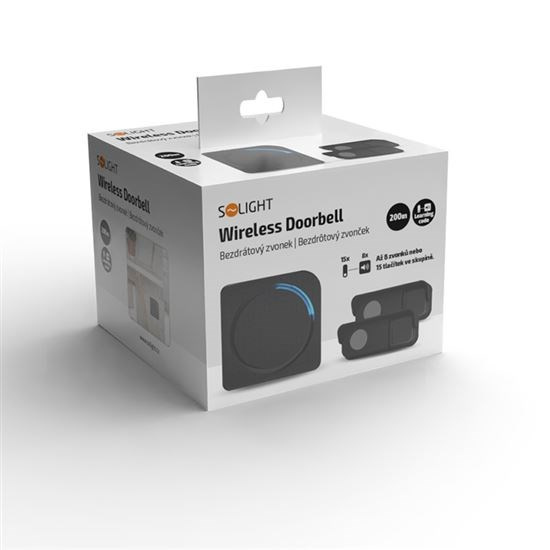 Popis Solight bezdrátový zvonek, 2 tlačítka, do zásuvky, 200m, černý, learning code