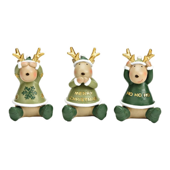 Soška los sediaci vo vianočnom kabáte 8 cm (mix 3 dizajnov /cena za 1 ks)