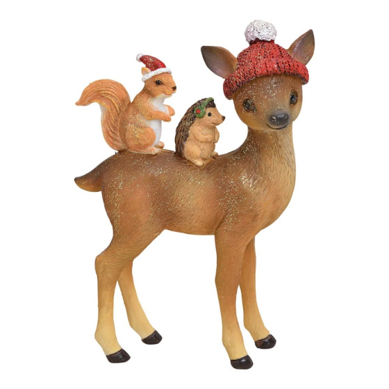 Soška srna stojaca so zvieratkami 10x4x15 cm, glitter