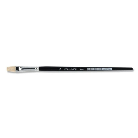 Plochý školský štetec na školské účely. Plochý štetec č. 12, driek čierno lakovaný, tulec chrómovaný. Driek drevený, tulec kovový (strieborný), vlas „prasa“. Veľkosť: 12, šírka vlasu: 10 mm, dĺžka vlasu: 16 mm, dĺžka potulky: 43 mm, dĺžka drieku: 175 mm. Celková dĺžka štetca je 234 mm.