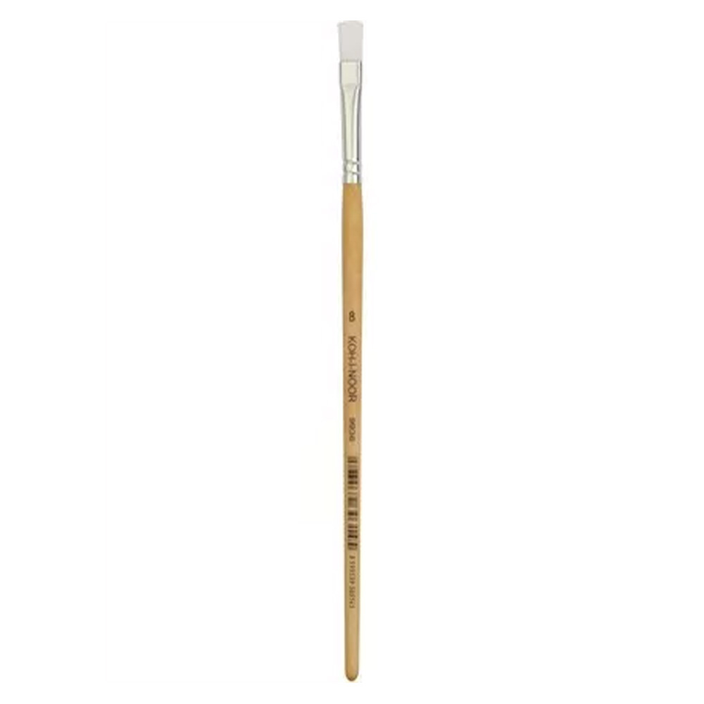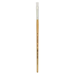 Plochý syntetický štetec pre školské účely. Kefa veľkosti 8. Má prírodný lakovaný driek, syntetický biely vlas a hliníkový tulec. Dĺžka vlasu 14 mm, šírka vlasu 8,8 mm, dĺžka rúčky 165 mm. Zlepené vlasy. Plochý štetec veľkosti 8, prírodná stopka lakovaná transparentným matným UV lakom, hliníkový tulec, syntetický biely vlas, lepený. Veľkosť: 8 mm, šírka vlasu: 8,8 mm, dĺžka vlasu: 14 mm, dĺžka tulca: 40 mm, dĺžka stopky: 165 mm, hrúbka stopky: 7,6 mm. Celková dĺžka kefy 219 mm.