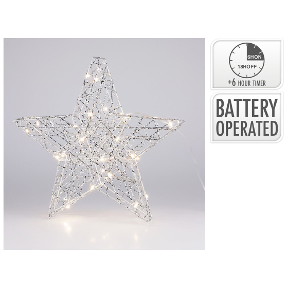 Stojaca hviezda s kovovým rámom a LED osvetlením striebornej farby. rozmer cca: 30 x 5 x 30 cm 30x