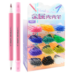 Plastový stojan + obojstranné fixy Metal Marker v 12-tich farbách po 18 ks.