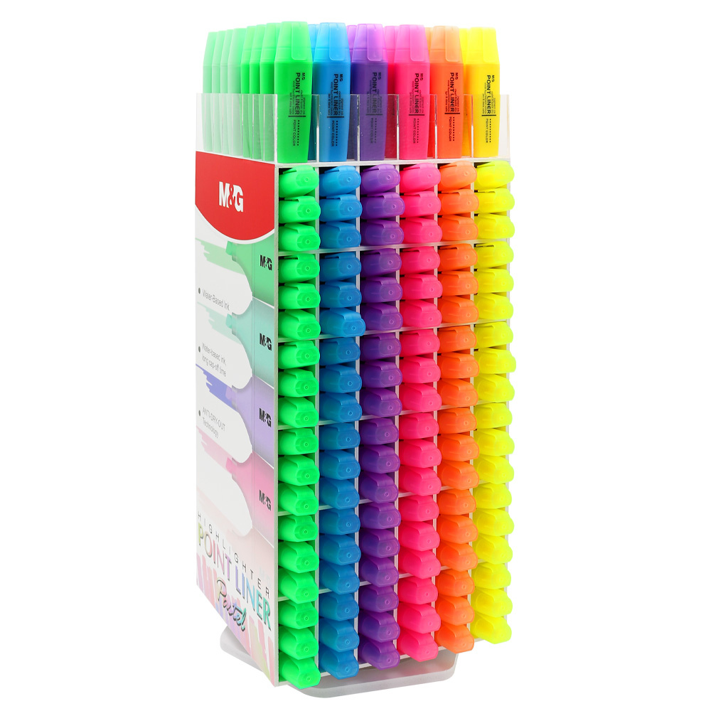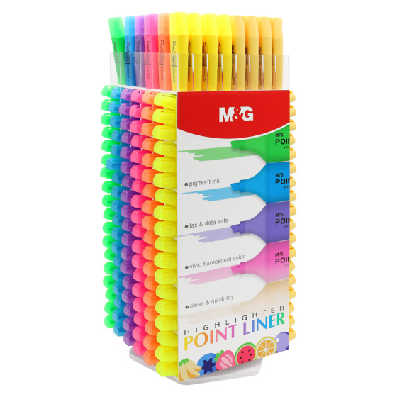 Sada zvýrazňovačov v jasných, neonových farbách.