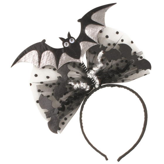 Strieborná čelenka s trblietkami a mašľa s netopierom