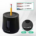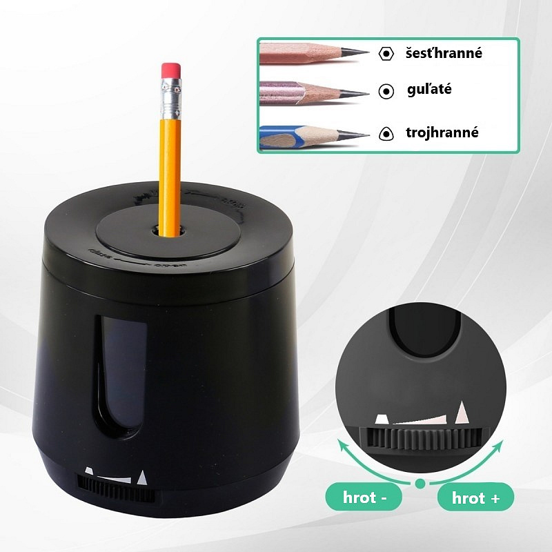 Nastaviteľné elektrické strúhadlo na farbičky / ceruzky v dvoch farbách: čiernej a modrej.