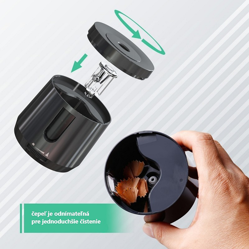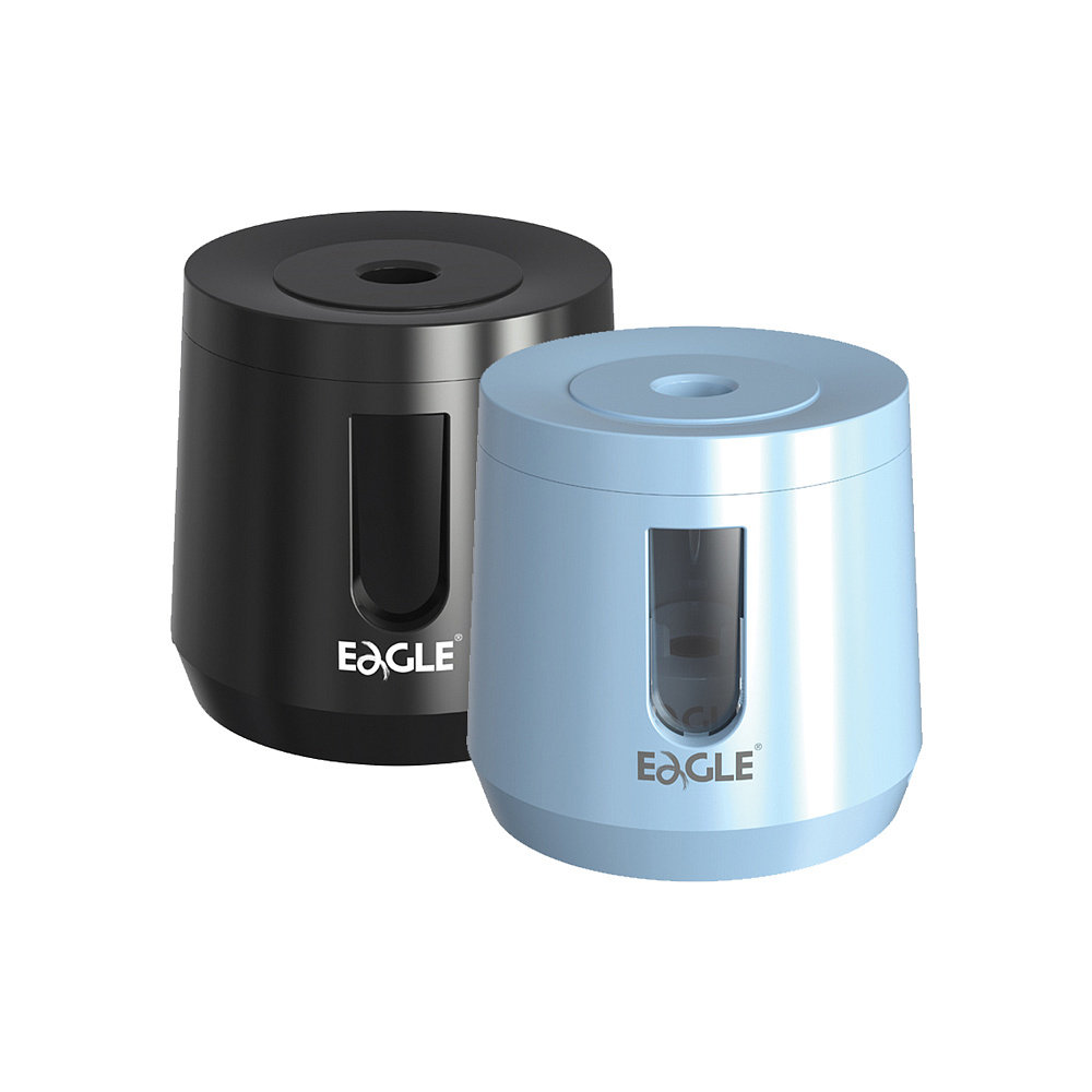 Elektrické strúhadlo na farbičky / ceruzky v dvoch farbách: čiernej a modrej.