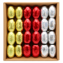Lesklá stuha na balenie darčekov v obľúbených troch vianočných farbách.