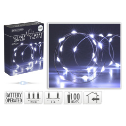 Svietiaca reťaz obsahuje 100 mikro LED. celková dĺžka reťaze: 505 cm dĺžka prívodného vodiča: 10 cm