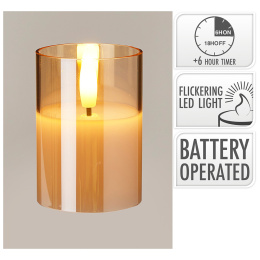Sviečka sklenená LED s časovačom 7 cm, vosk vo vnútri, realistický plameň, jantárová farba