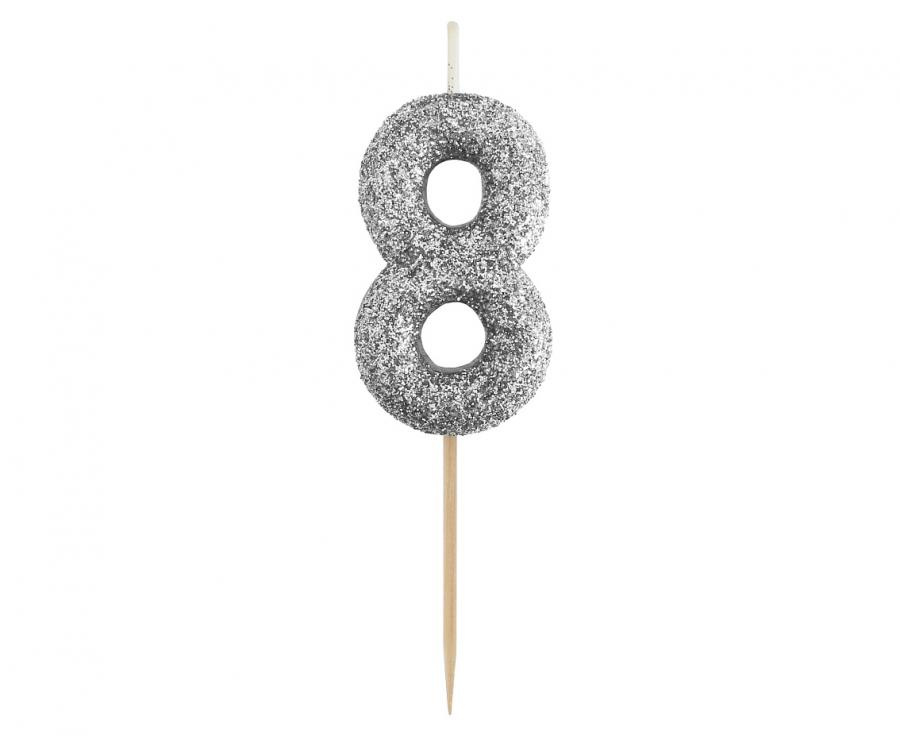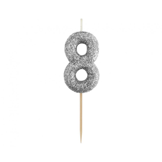 Sviečka tortová B&C - číslica "8" glitter čierna 11 cm