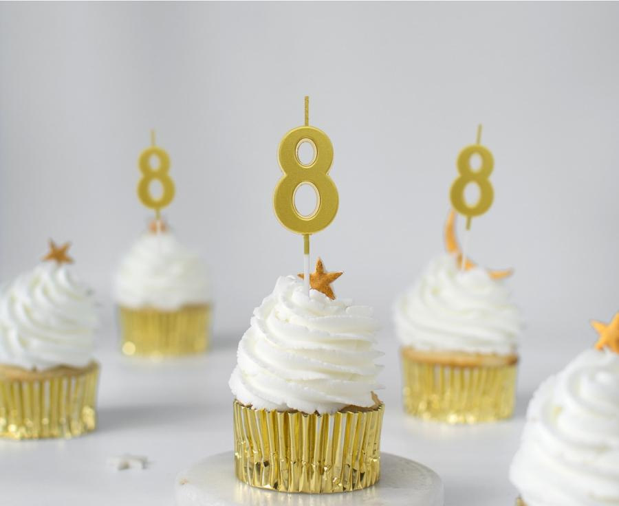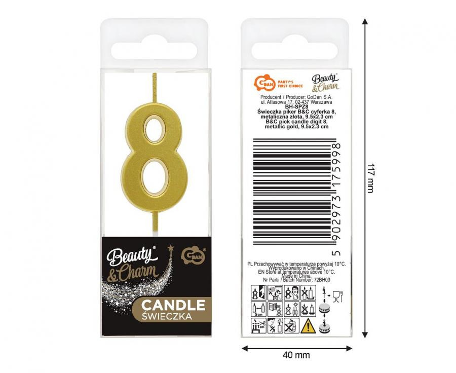 Sviečka tortová B&C - číslica "8" metalická zlatá 9,5 cm