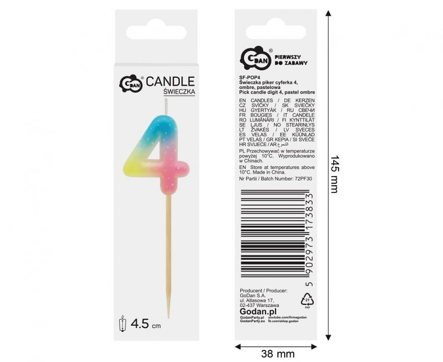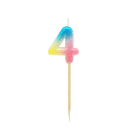 Sviečka tortová - číslica "4" pastel ombre 11 cm