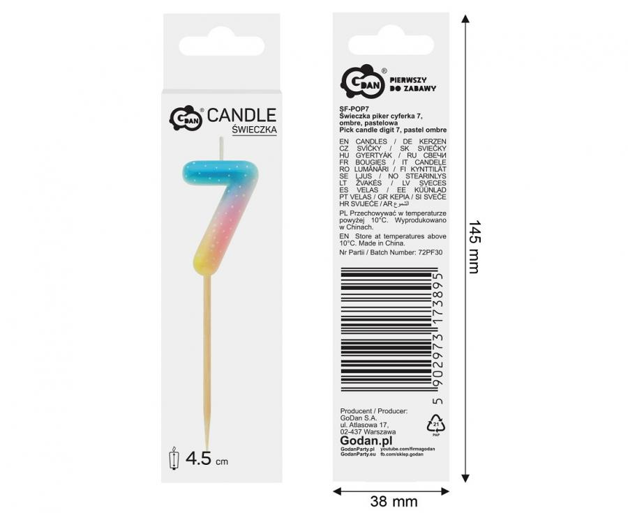 Sviečka tortová - číslica "7" pastel ombre 11 cm