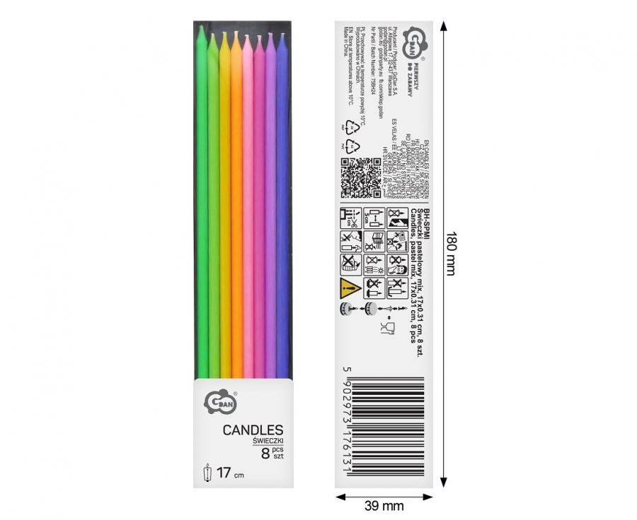 Sviečka tortová - Pastel mix farieb 17 cm (8 ks)