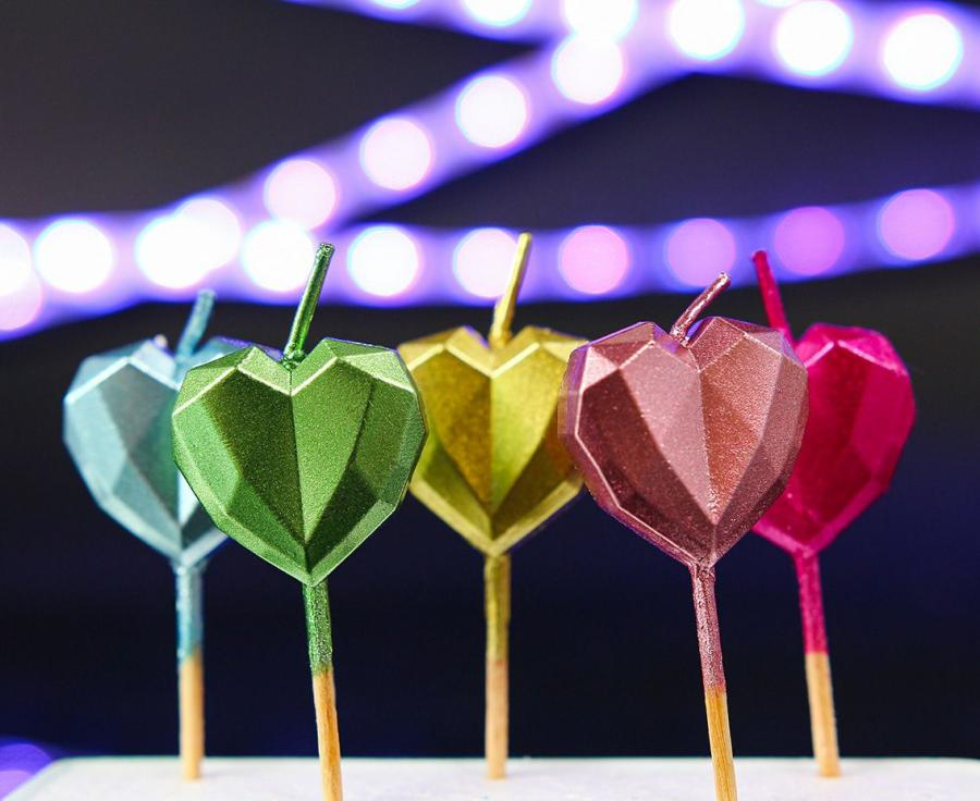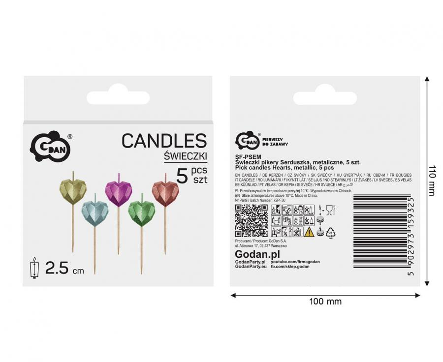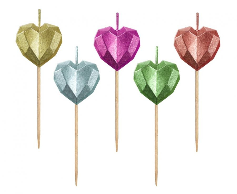 Sviečka tortová - Srdcia metalické farby 7,2 cm (5 ks)