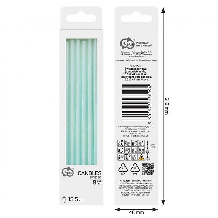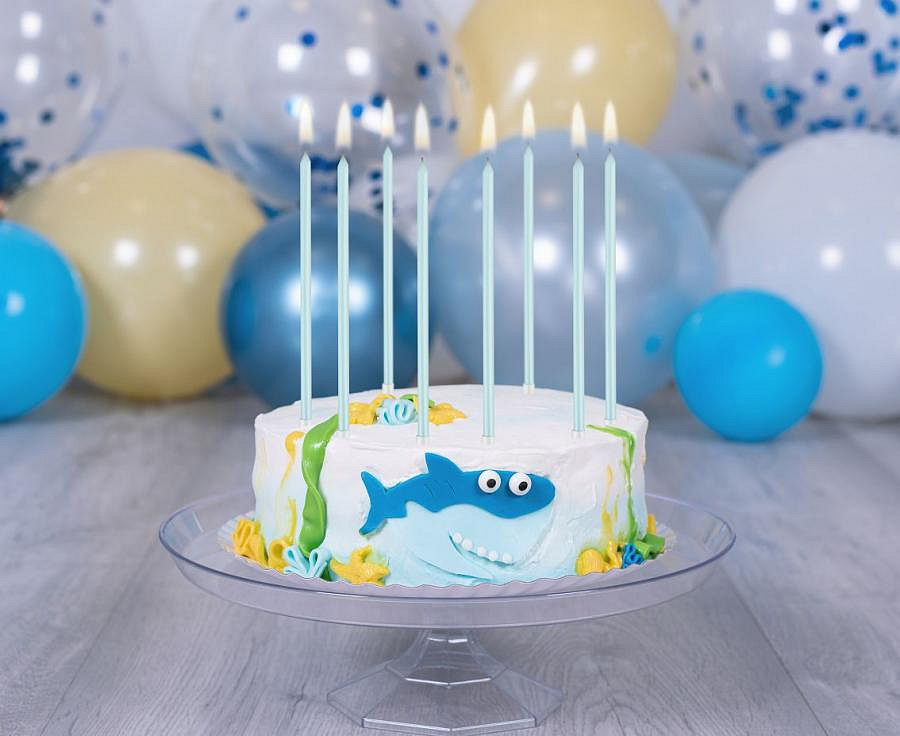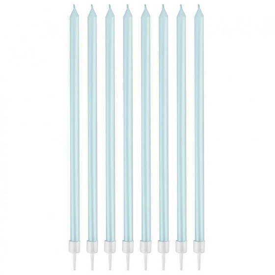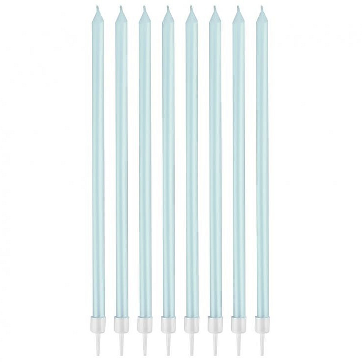 Sviečka tortová - svetlomodrá perleťová 15,5 x 0,44 cm (8 ks)