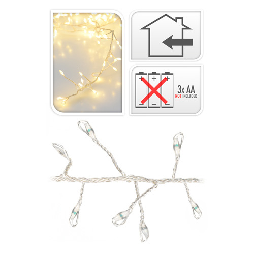 Svietiaca reťaz obsahuje 100 LED mikro klaster. celková dĺžka reťaze: 1,5 m dĺžka prívodného vodič
