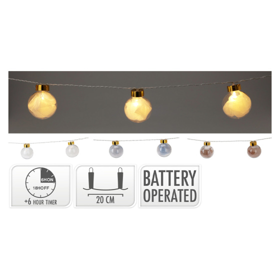 Svietiaca reťaz obsahuje 10 LED lampičiek o priemere 60 mm.