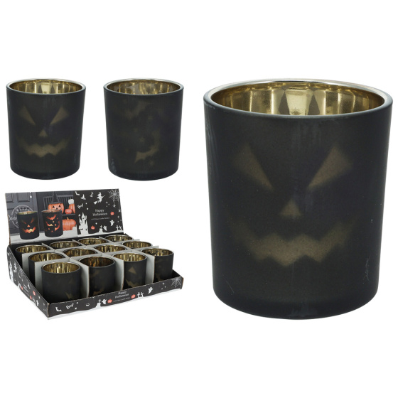 Svietnik s netopierami /tekvicou v pulzujúcom svetle sviečky nesmie chýbať počas strašidelnej Halloween noci.