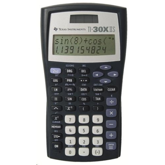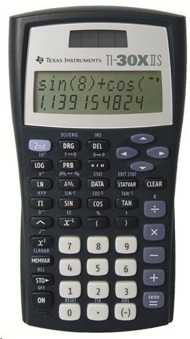 TI 30 X II Solar od společnosti Texas Instruments, dvouřádková kalkulačka pro vědecké úlohy, optimalizovaná pro učební osnovy. Pokud je dostatek světla, je napájena solárními články, jinak funguje na baterie (CR2025).