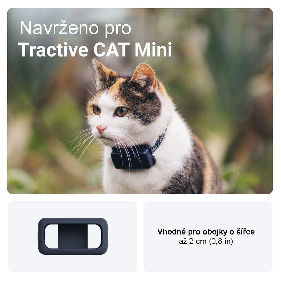 Držák byl speciálně navržen pro lokátor Tractive GPS CAT Mini, jeho kompatibilita s obojky je však téměř neomezená, - stačí, aby nebyly širší více než 2 cm.