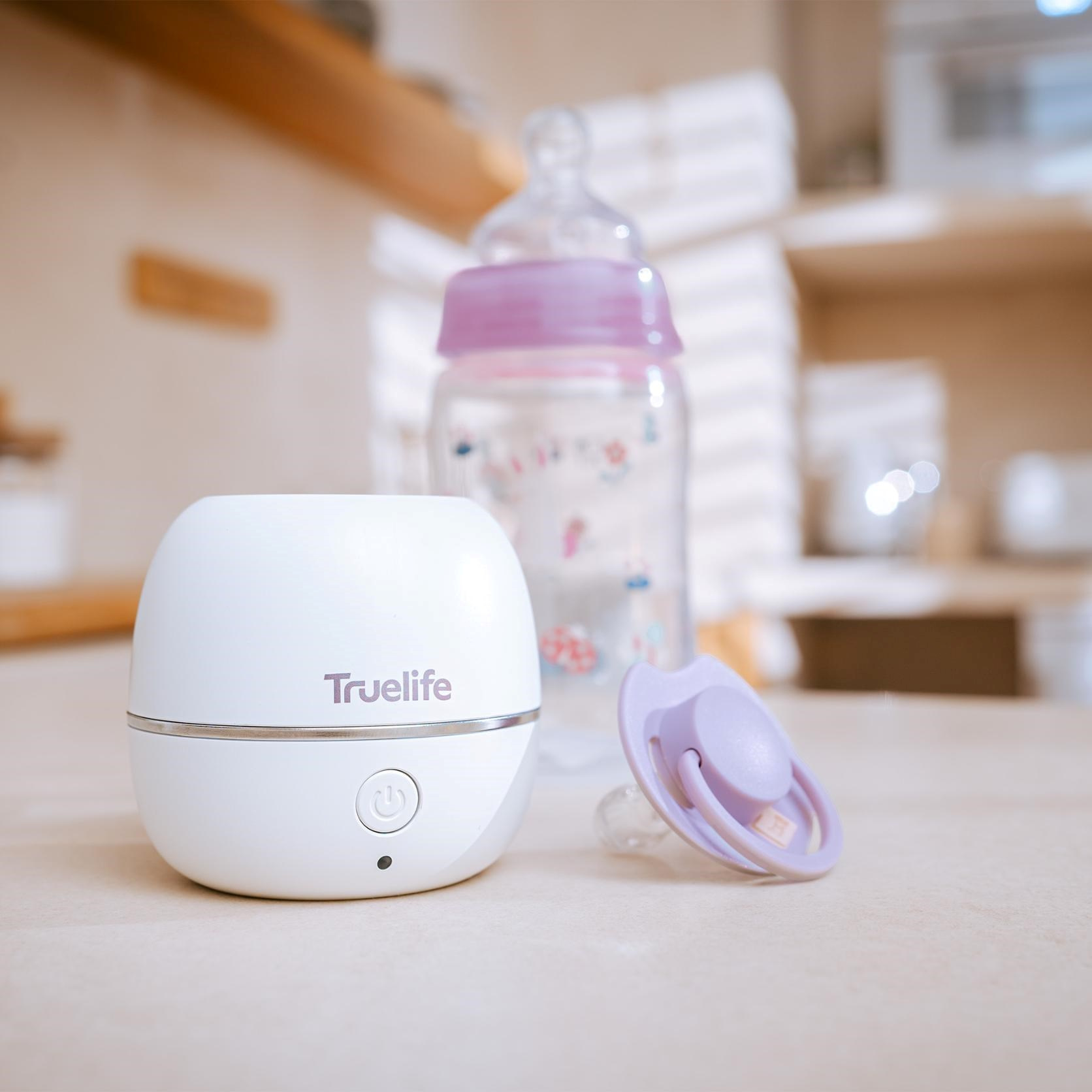 S príchodom bábätka sa každý deň naplní radosťou, ale zároveň aj okamihy, keď je potrebné konať rýchlo. Stačí chvíľa nepozornosti a cumlík skončí na zemi, zatiaľ čo vaše dieťa by ho chcelo mať späť čo najskôr. Práve v týchto chvíľach vám pomôže Truelife Pacifier UV Sterilizer S3, malý a spoľahlivý pomocník, ktorý sa vďaka svojej veľkosti zmestí do každej tašky, kabelky alebo vrecka kočíka. S praktickým siliconeovým poutkom ho môžete mať neustále pri sebe a byť si istí, že čistý cumlík je vždy po ruke. Sterilizácia prebieha úplne jednoducho a šetrne. Počas troch minút spoľahlivo odstráni cumlík až 99,9 % baktérií a vďaka bezpečnostnému systému veka sa spustí len vtedy, keď je správne uzavretý. Priehľadná okienko umožňuje sledovať proces bez unikania UV-C žiarenia, a telo z odolného plastu bez BPA zabezpečuje, že sterilizácia je úplne bezpečná pre deti. Vstavná batéria zvládne až 50 cyklov na jedno nabitie, takže sa na sterilizátor môžete spoľahnúť kedykoľvek a kdekoľvek, či už ste doma, na prechádzke alebo na cestách.