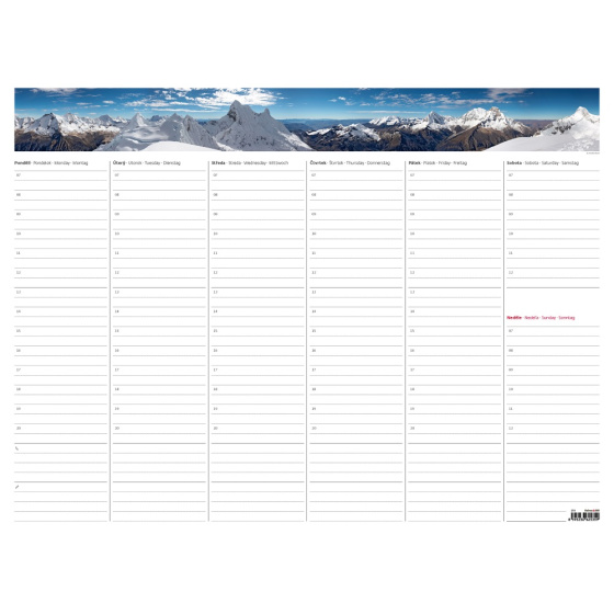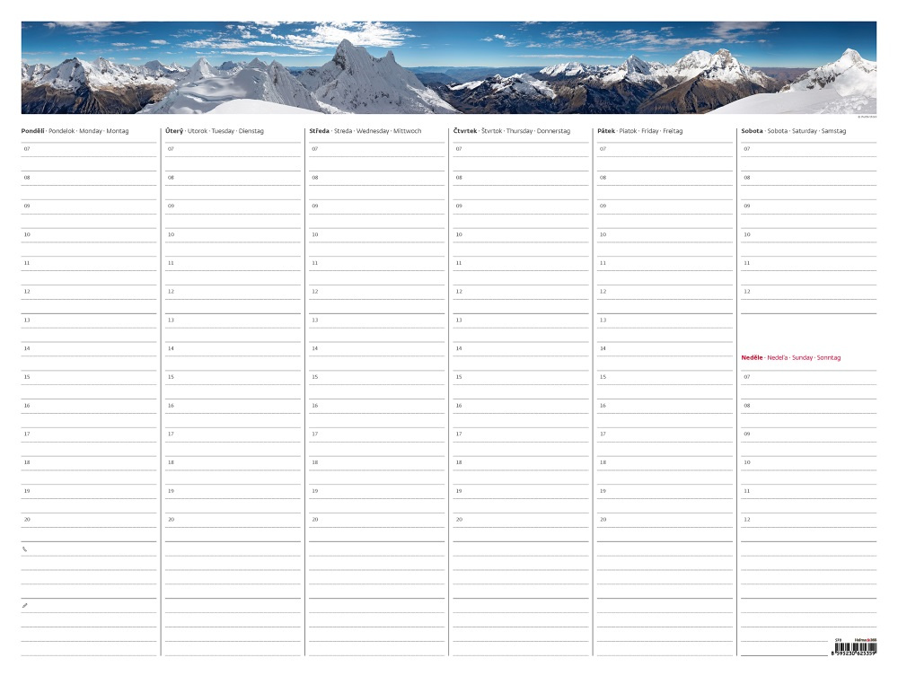 Formát: 63 x 48 cm. Rozsah: 30 listov. Možnosť dokúpenia lišty – lišta nie je súčasťou výrobku. Kalendár má lepenú väzbu v hornej časti.