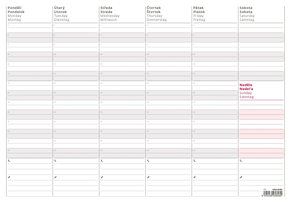 Formát: 45 x 31,5 cm. Rozsah: 50 listov. Možnosť dokúpenia lišty S75 – lišta nie je súčasťou výrobku. Kalendár má lepenú väzbu v hornej časti.