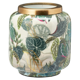 Váza 155 mm s potlačou so zelenými listami džungle a zlatým lemovaním