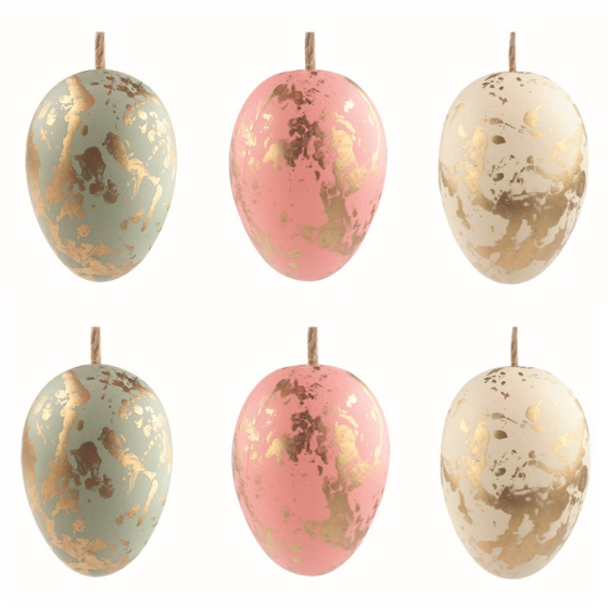 Menšie vajíčka s jemným, zlatým dekórom a jutovým povrázkom vyniknú takmer v každom interiéri.Sada 6 ks v sáčku.