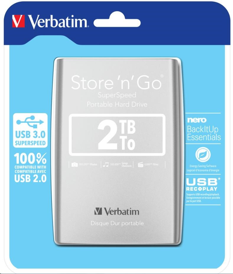 VERBATIM HDD 2.5" 2TB Store 'n' Go USB 3.0, Strieborná