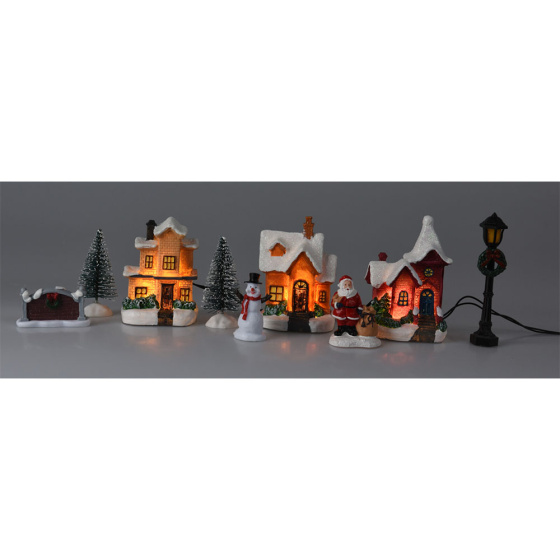 - sada obsahuje: 1x Mikuláš, 1x lucerna, 2x strom, 1x snehuliak, 3x domček, 1x malá stena, krabička s batériami