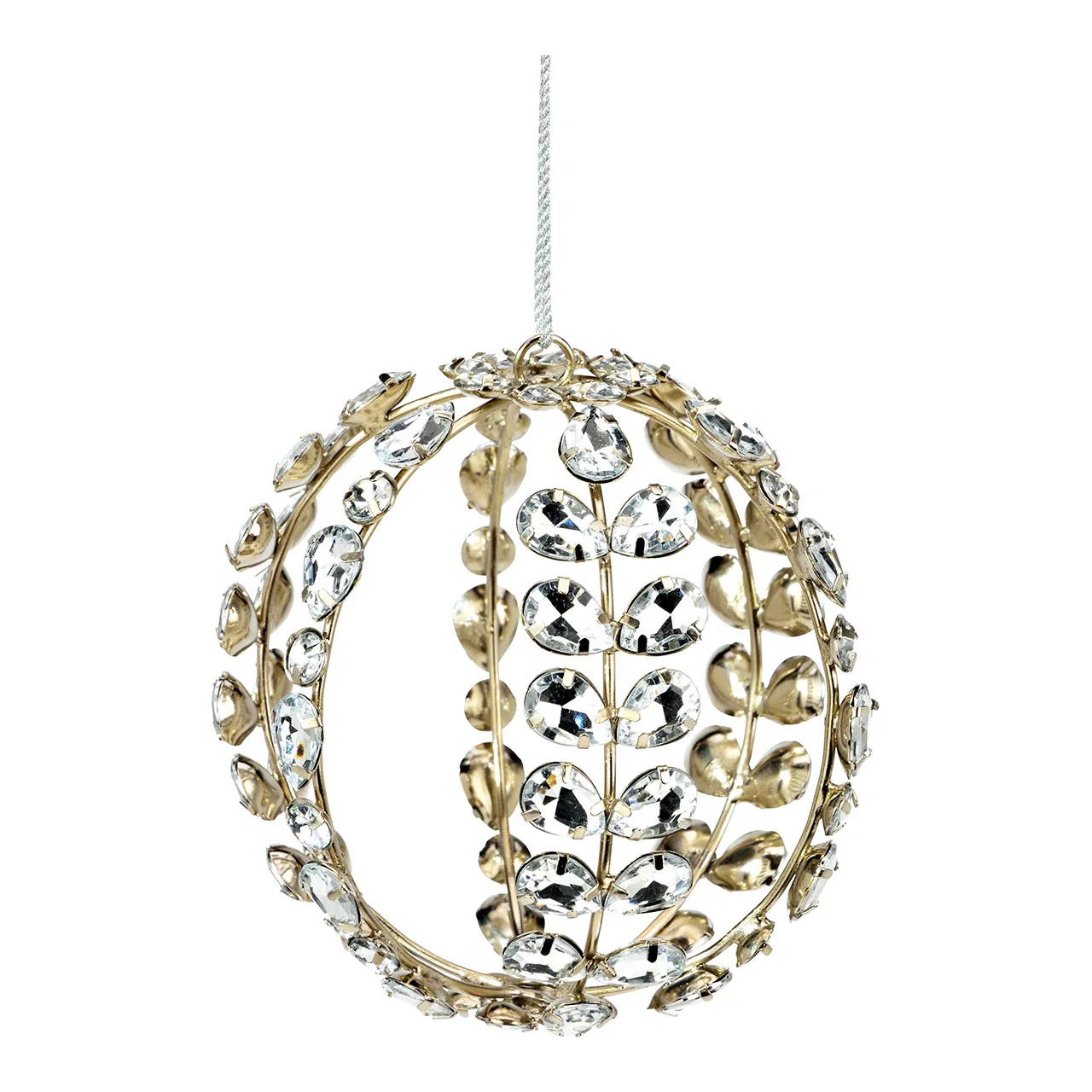 Vianočná guľa 10 cm, kov a drahokamy (bižutéria)