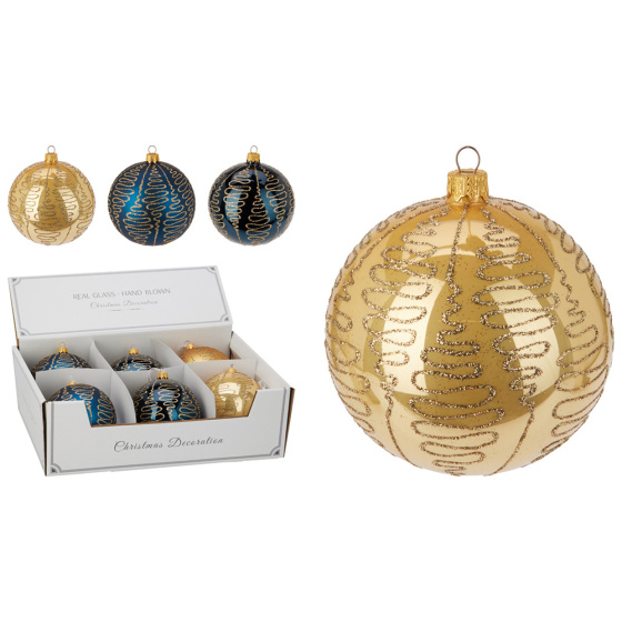 Vianočná guľa 100 mm, glitrovaný zlatý dekor (mix 4 farieb, cena /1 ks)