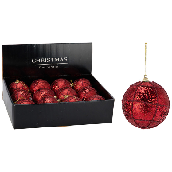 Vianočná guľa 80 mm červená, glitrovaná (cena /1 ks)
