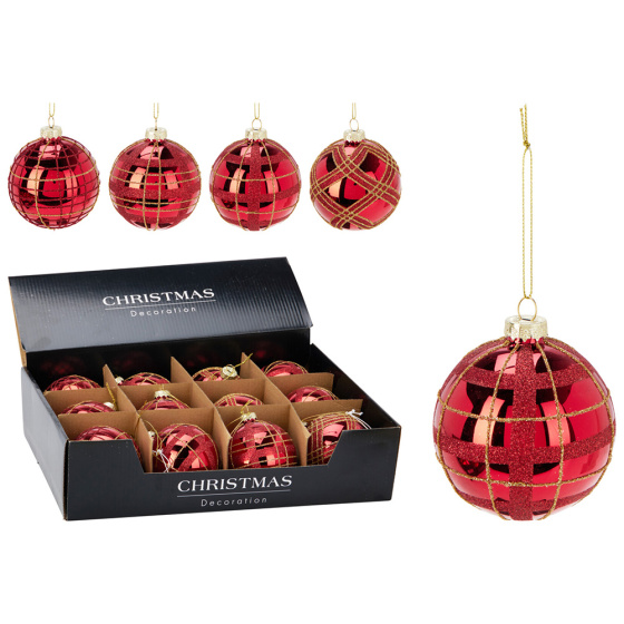 Vianočná guľa červená lesklá / glitrovaná (4 dizajny).