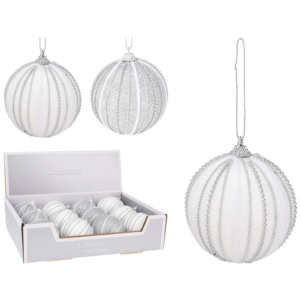Vianočná guľa trblietavá, dekorovaná gorálkami. priemer ozdoby: 8 cm čiapka a šnúrka striebornej fprečítajte si viac