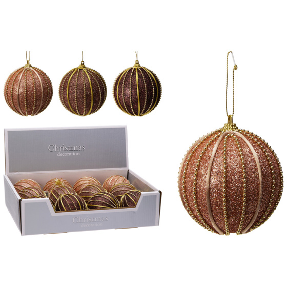 Vianočná guľa trblietavá, dekorovaná gorálkami.