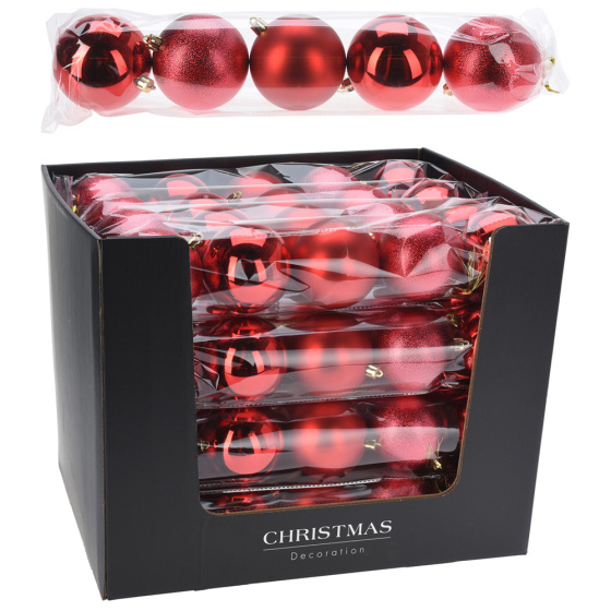 Vianočná guľa 80 mm v červenej farbe (mix) - sada 5 ks