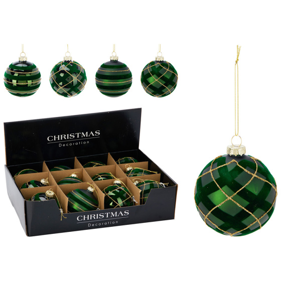 Vianočná guľa zelená lesklá / matná s potlačou zlatej farby (4 farby).