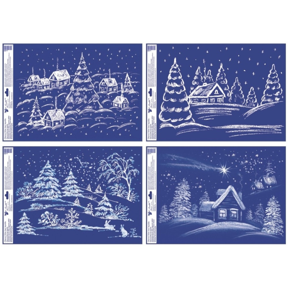 Popis Vianočná okenná fólia s glitrami Zasnežená krajina 35 × 50 cm (cena je za 1 hárok)