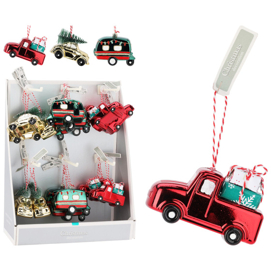Autíčka s vianočnými darčekmi so šnúrkou na zavesenie.